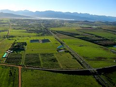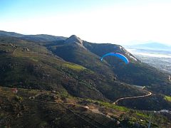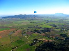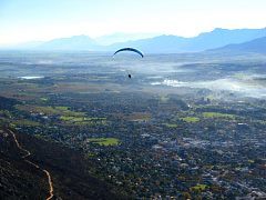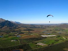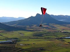 Despite the total lack of wind on the ground, we had a fresh Easterly all the way to Paarl. We tried every altitude from just above treetops to 2000 feet on the GPS, but there was no lighter wind and everywhere was quite textured, constantly turning us off course. There were surprise blasts from the North, followed by very marked drift from the South. I found it tiring trying to maintain a straight flight-line to save fuel with my 115cm prop... and, I noticed Peter was flying hands-off all the way, just going with the flow, doing some weight-shift steering only when drifting way off... the benefits of a bigger 125cm propeller.