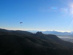 As we approached the Afrikaans Language Monument, our groundspeed started improving gradually, until we were making a comfortable 25 to 30kph. We had used up more than half our fuel just to get there. Russell has a smaller tank (8L vs 13.5L) so he opted to turn around just after the monument to head straight back. Peter and I climbed to 2500ft over Paarl, crossing the Eastern side of the Berg, with our groundspeed increasing all the way as a Southerly wind established itself in the Paarl Valley.